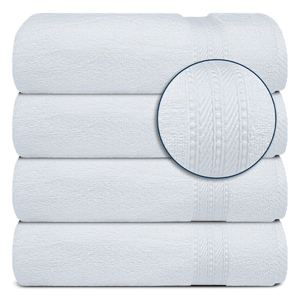 The premium white towels also utilize ring spun cotton, striking an excellent balance between softness and longevity. They are engineered to withstand frequent laundering while retaining their texture and appearance.