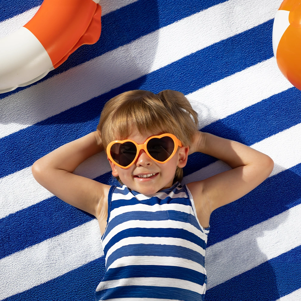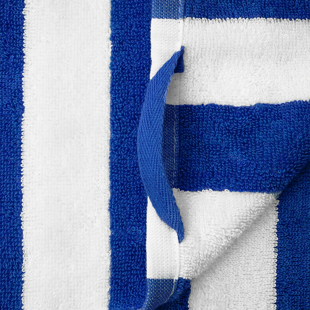 A crisp towel elevates the guest experience. Our blue stripe beach and pool towels offer a soft, inviting feel.