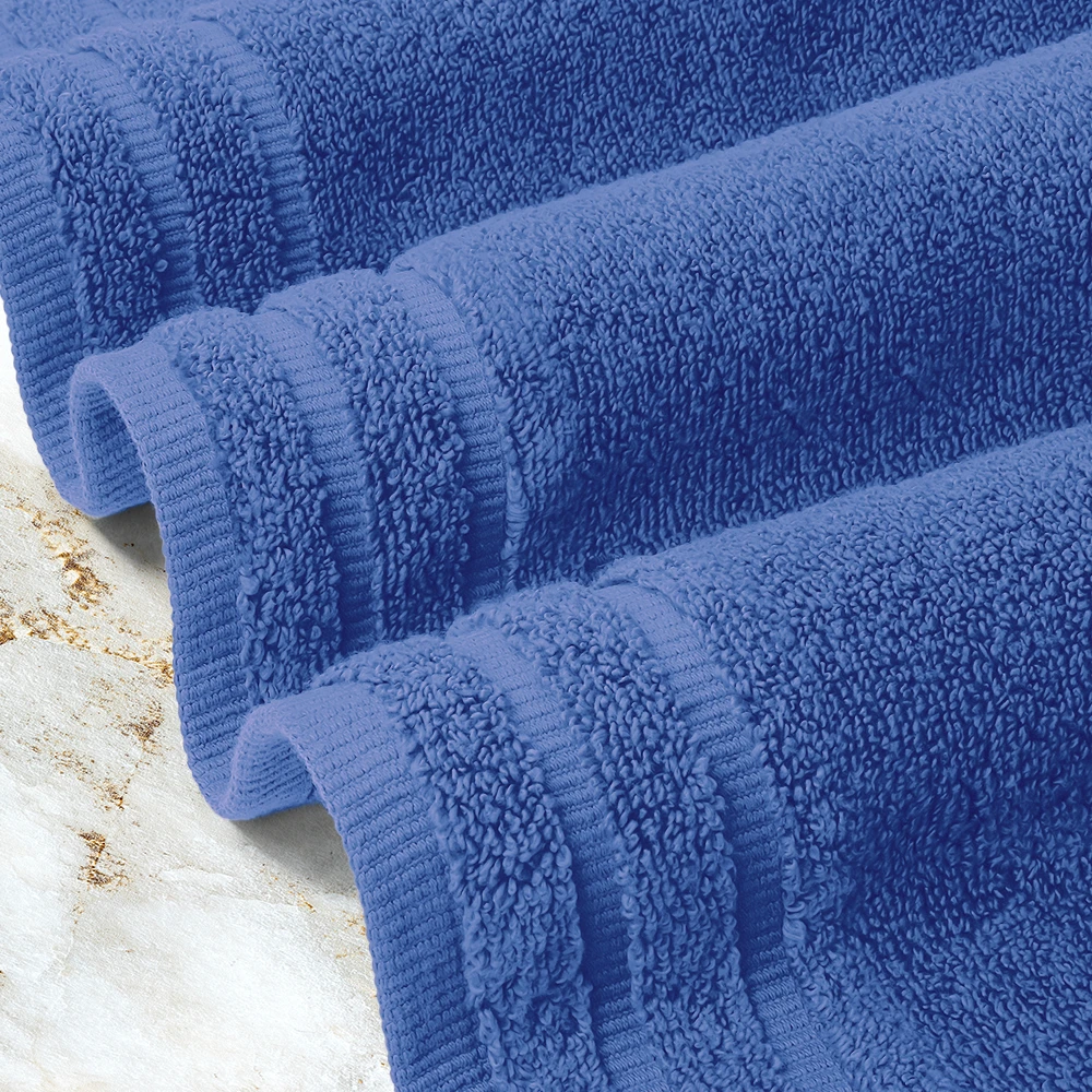 Made from luxury zero-twist cotton, these towels are ultra-soft and plush. They are highly absorbent and dry quickly, making them practical and stylish. Reinforced decorative hems ensure strength and durability. Double-needle stitching prevents wear and tear over time. The Oxford stripe border design adds a touch of elegance to their look.