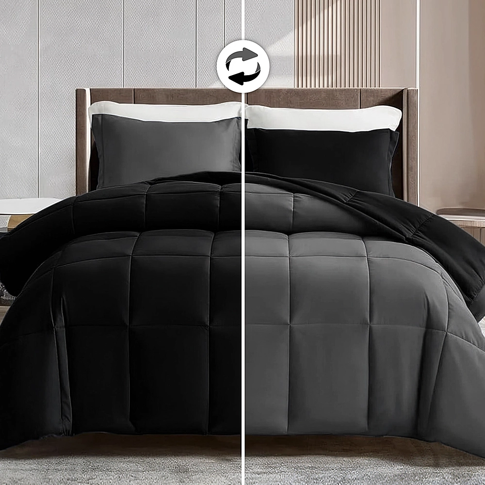 Offering dark grey on one side and black on the other, this reversible comforter provides a chic, sophisticated touch, ideal for high-end hotels and stylish home settings.