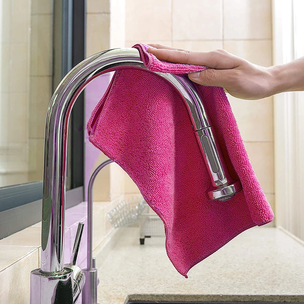 Our pink microfiber towels are made with high-quality fabric. The material is soft, durable, and very absorbent. It quickly soaks up moisture and dirt.