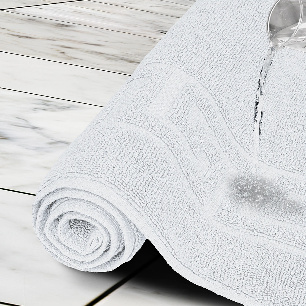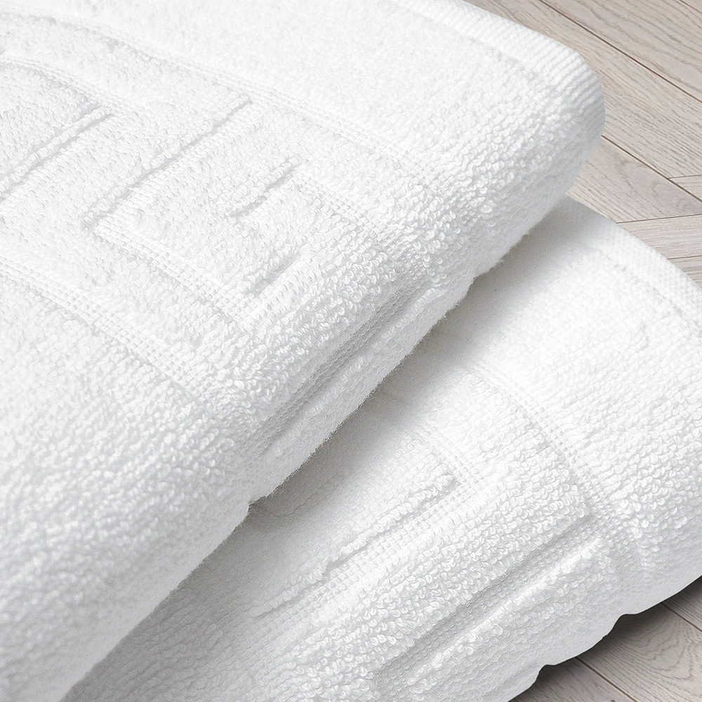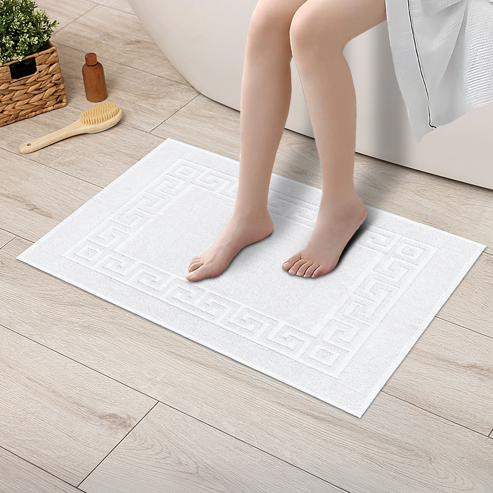 The Luxury Bath Mats are ideal for a range of settings such as hotels, homes, spas, gyms, and others. They have reinforced edges and a Greek key design, making them a stylish and durable addition to any bathroom.