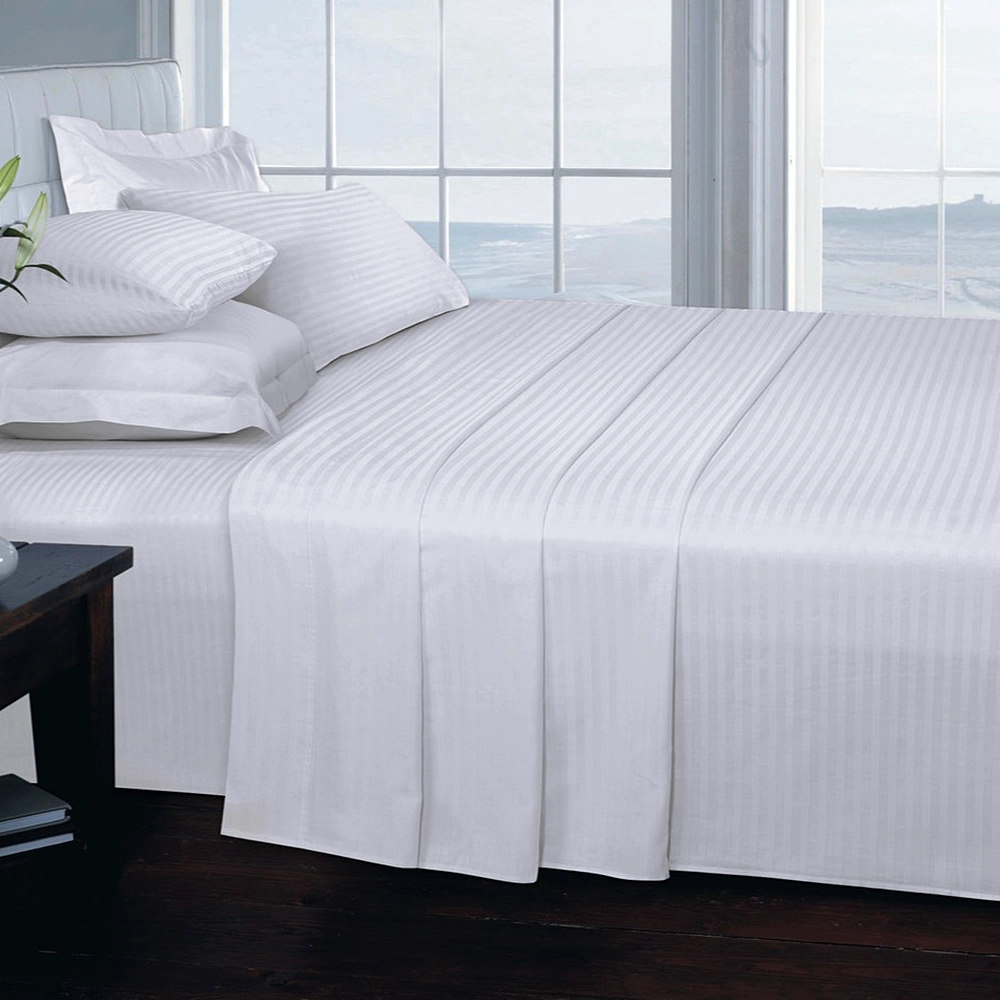 Linen Mart’s White Stripe Double XXL Flat Bed Sheet: A Stylish Choice for Hospitality