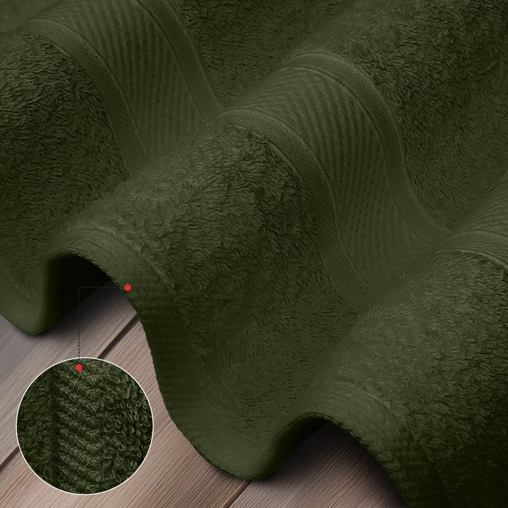 Each 27×54 Bath Towel comes in vibrant colors such as navy blue, hunter green, jet black, charcoal grey, espresso brown, moss green, and capri blue.